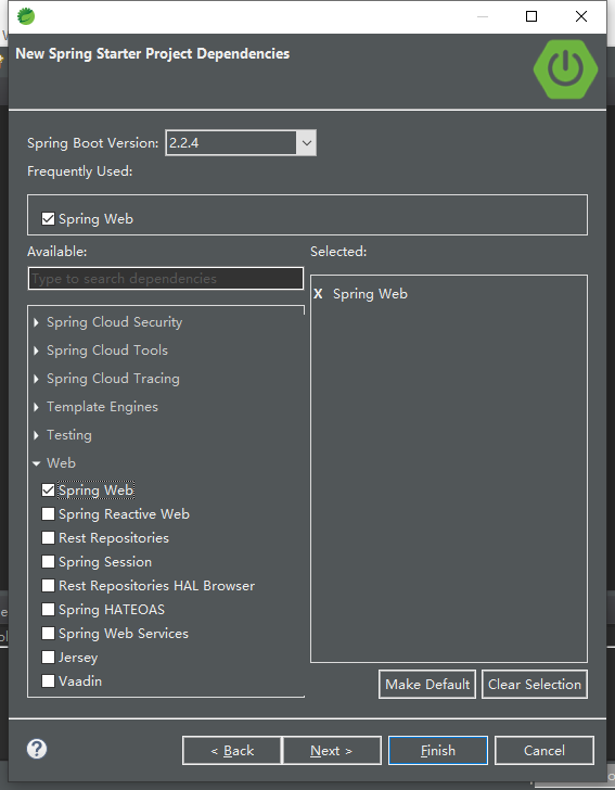 选择Spring Web,点击Finish。