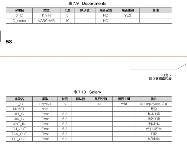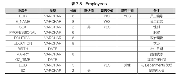 表,表结构见表 7.8~表 7.10。