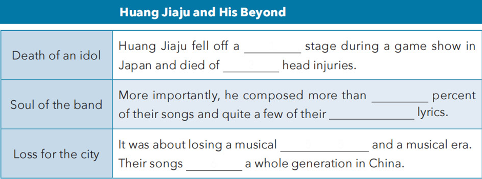 Task 2 Listen to the passage again and complete the notes by filling in the blanks.