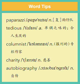 Cues: lack privacy, find life very difficult, not be able to go out without being noticed, make a normal lifestyle a real problem, ask for autographs, ask questions, the target for media intrusion