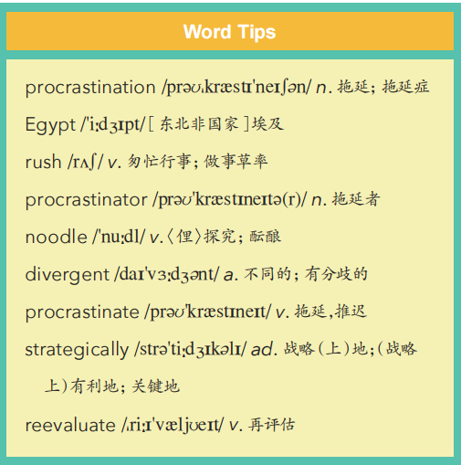 1. Do you think procrastination is a bad thing? Why? What is the other meaning of it in ancient Egypt?