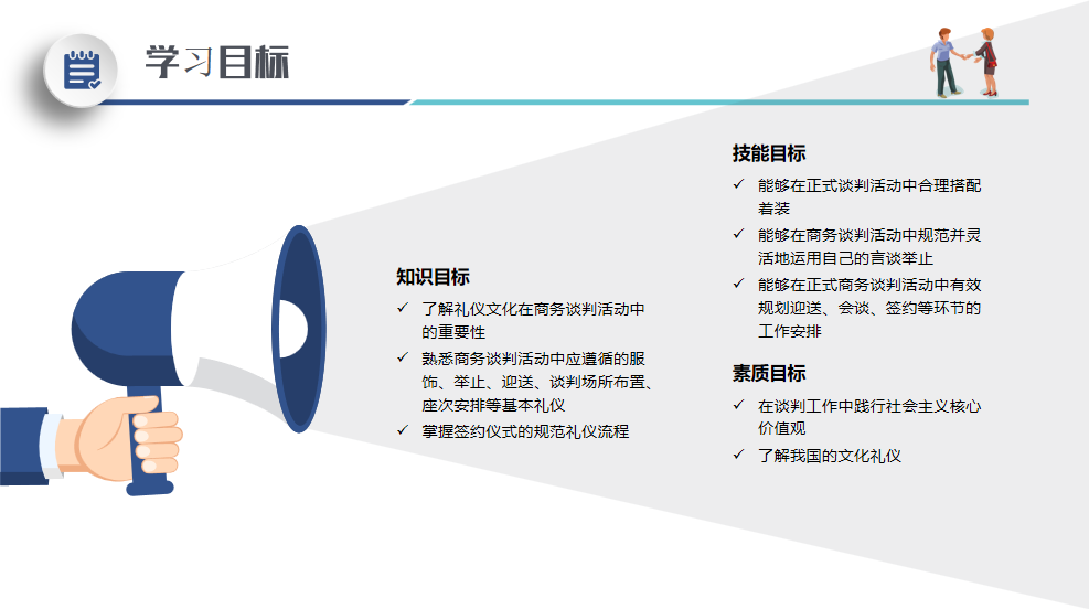 • 7.4 任务7.3 小心翼翼,仪式恰当—谈判协议签订