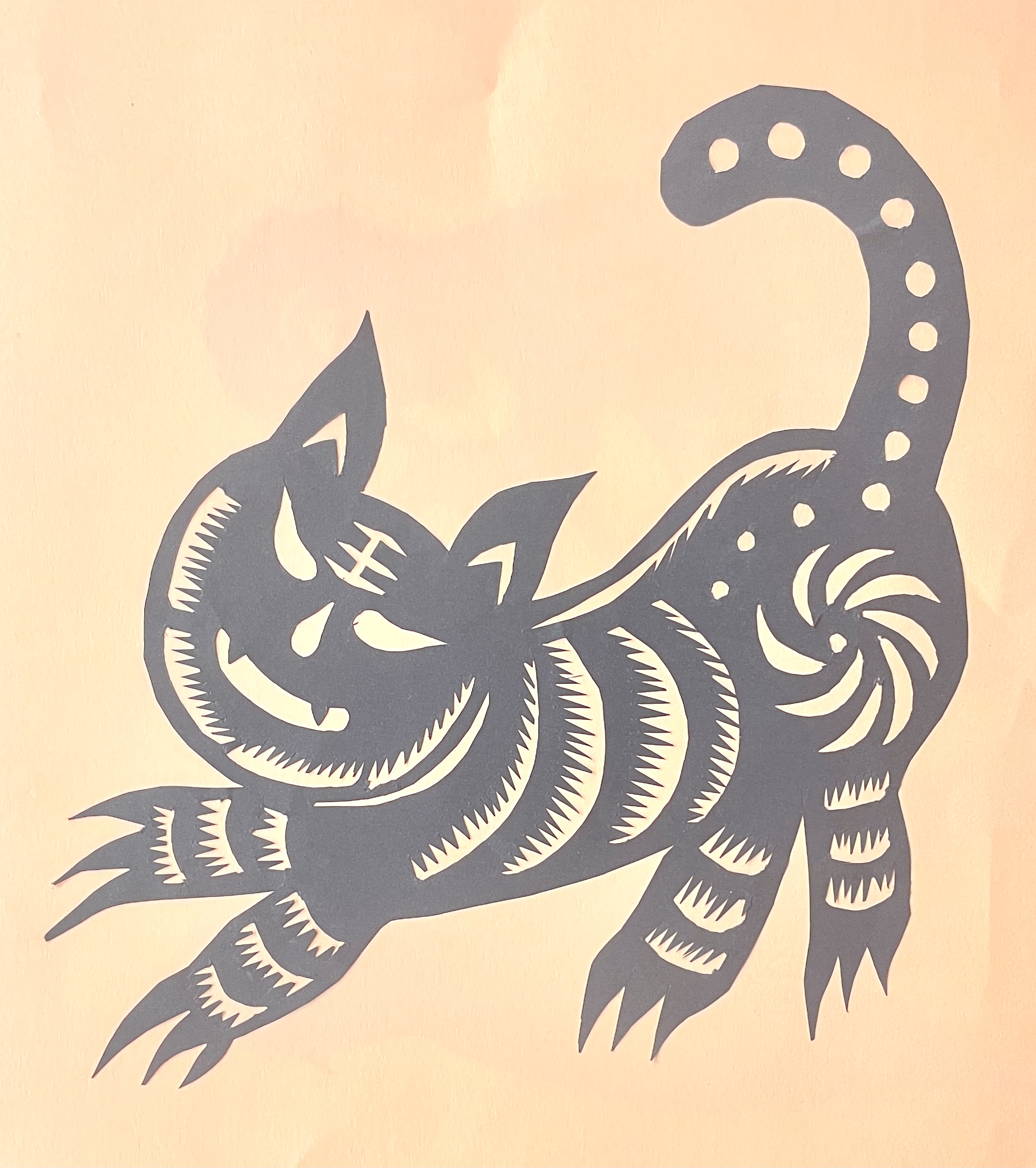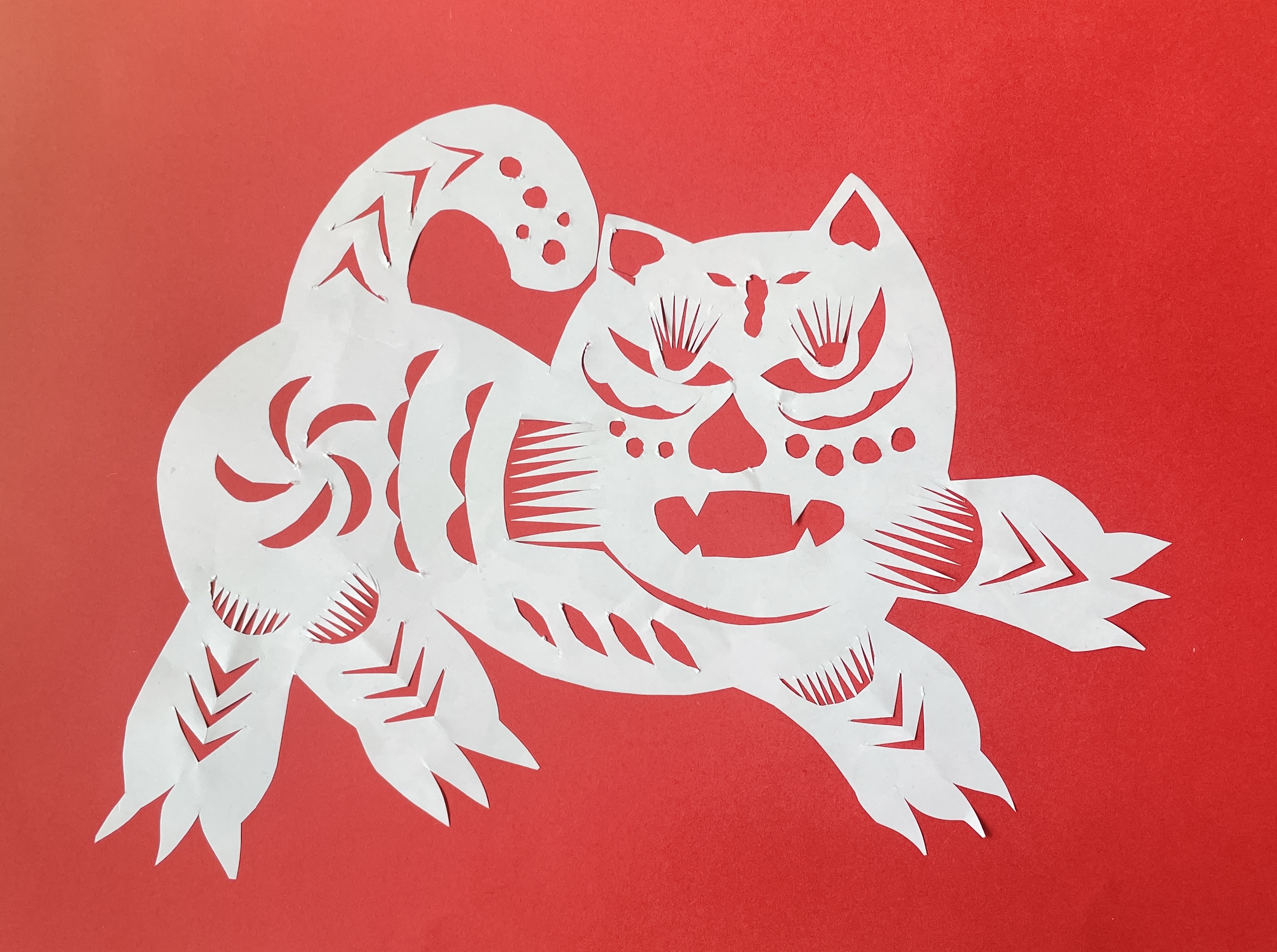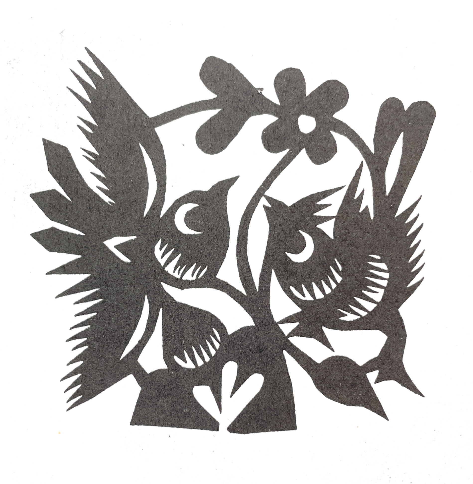 在课堂实践之初,剪纸学习者以对临(边看参照物边对照临摹)和复临(看过参照物后通过记忆想象临摹)的方式进行体验,实现技巧上的临剪能力的逐步提高。通过眼、手、心的感官协同训练,经过一段时间后,逐渐能达到“指尖飞花”的熟练效果。然后在熟练的剪刻技术加持下,对模仿的参照物在临剪基础上进行变化,即“临变”。此时,剪刻纸学习者内心会产生一种自信和表现的冲动,内心情感和主观意念会随着手中的剪刀一起“舞动”,内心变得宁静,思想高度专注,情绪饱满充分,心中的形象会随着刻画得深入或到位,在手中由“形似”变得“神似”,这是一段神奇的体验经历。