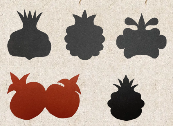 2.折剪法。折剪法需要将纸张进行折叠,可以是对折、四折或三折、五折等,以此类推,折叠越多,重叠纸张越厚,越不利于剪刻。因此,一件作品通常不宜超过八折。折叠后,可参照图形的最终展开效果,来绘制参考线。例如对折后,画出图形的一半轮廓作为参考线即可。值得注意的是,该轮廓参考线必须以纸张的折叠中线为其中线,确保图形最终是完整的。