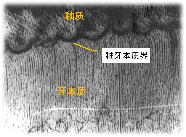 2、硬度:是人体最硬的组织,类比石英,相当于牙本质硬度的5倍。对咀嚼磨耗有较大的抵抗力,同时是深部牙本质和牙髓的保护层。高硬度的釉质无法用常规组织学方法(石蜡切片术)观察,一般采用磨片观察其组织学结构。