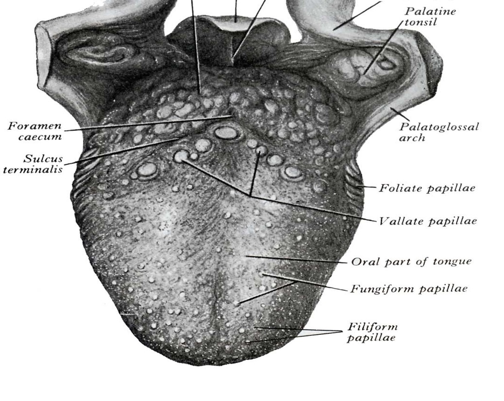 若角化上皮剥落延迟,同时与食物残渣、唾液、细菌等混杂,附着于乳头表面,即成舌苔;在舌苔剥脱使舌背呈地图样时,称为地图舌。舌苔的色泽、分布、厚薄、干腻等变化可反应一些全身状况的改变,临床上是中医辨证论治的重要依据。