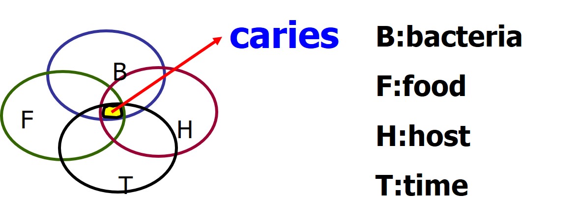 即细菌、食物、宿主、时间共同决定龋病形成。目前广泛接受。