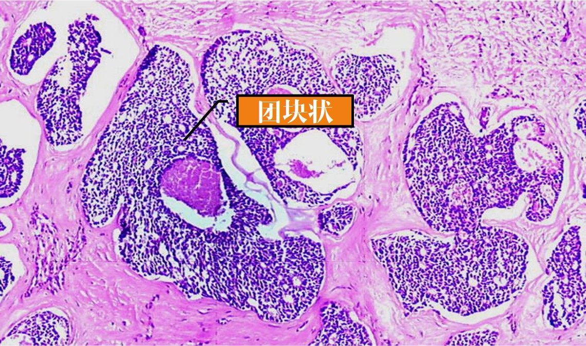 3.实性型:团块状,排列成大小不等上皮团(图12.2-16)。