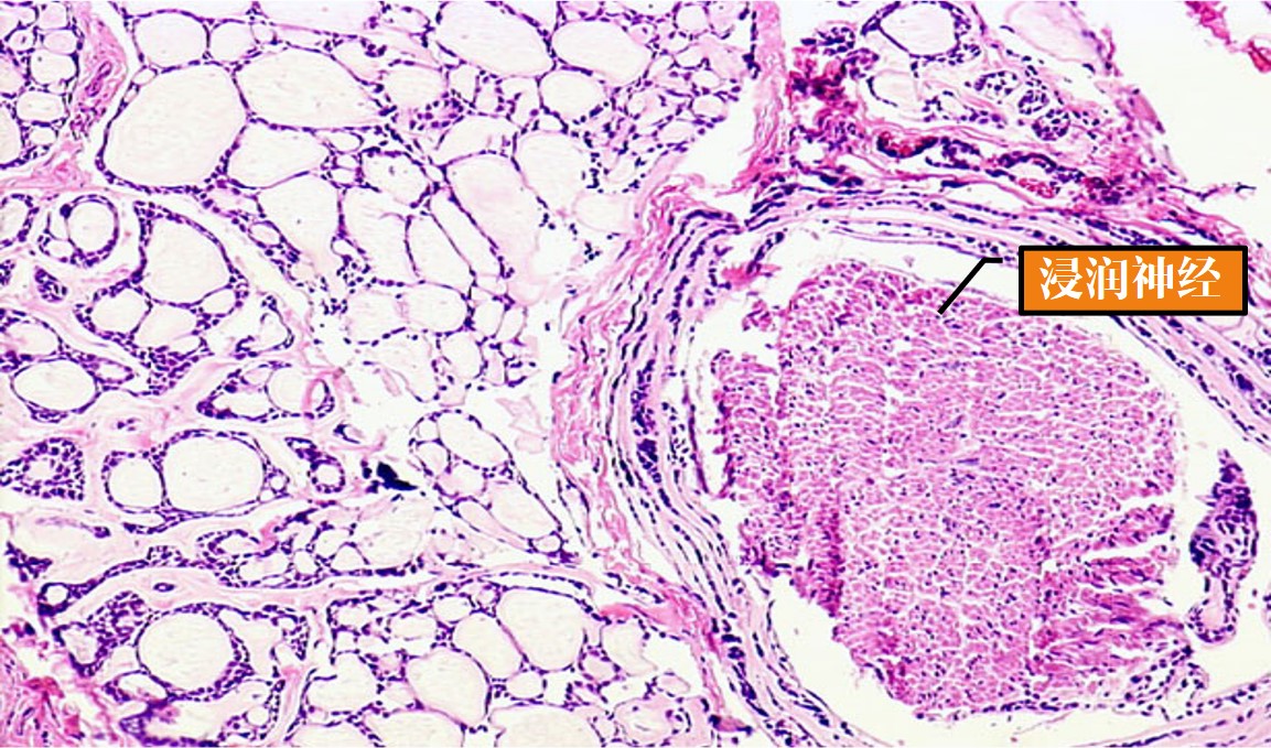 间质常有玻变,肿瘤细胞常浸润神经(图12.2-17)。