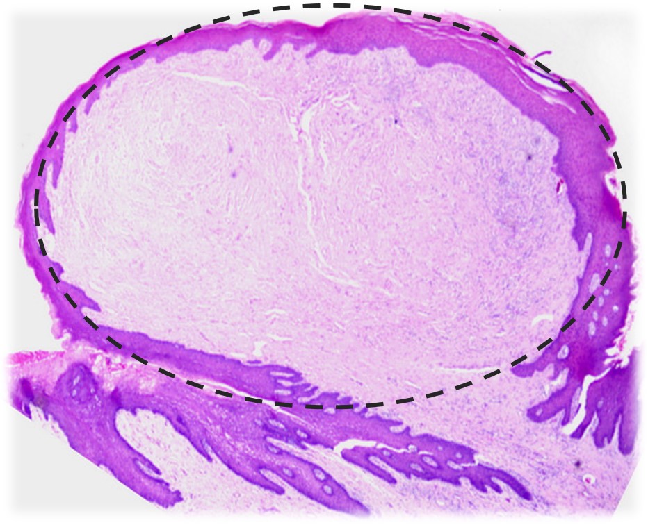 是常见的口腔纤维组织增生性病变,非真性肿瘤。