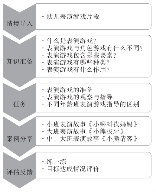(3)掌握幼儿表演游戏组织指导工作各个环节的主要内容。