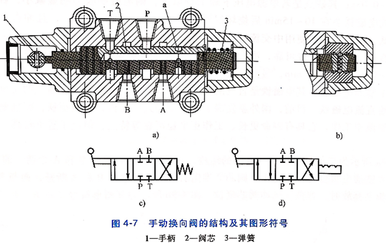 利用手动杠杆来改变阀芯位置实现换向。