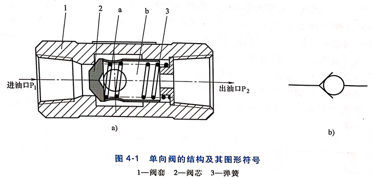 普通单向阀:控制油液的单向流动。