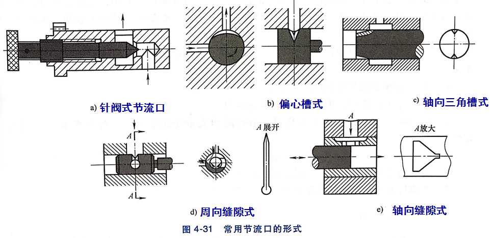 工作原理:利用改变阀口通流截面积的方法来控制流体流量,从而控制执行元件的运动速度。