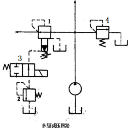 若系统中需要二种以上的压力,则可采用多级调压回路。