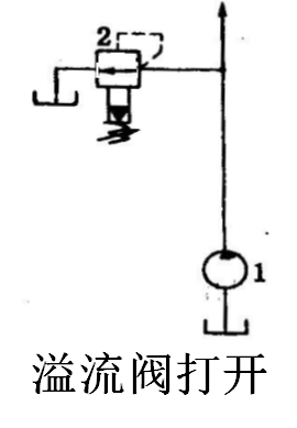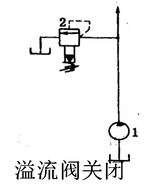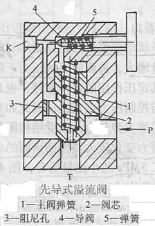 当系统压力由阀4调定时,阀2的先导阀口关闭,但主阀开启,液压泵的溢流流量经主阀回油箱。