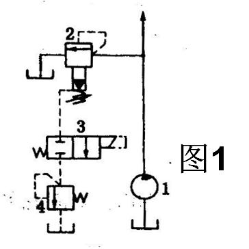 当两位两通换向阀3处于图1位置时,因为阀3关闭,所以,系统的压力由阀2决定。
