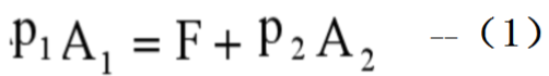 如图所示,若设液压缸无杆腔的面积为A1,油液压力P1,有杆腔的面积为A2,油液压力P2,由力平衡方程可得: