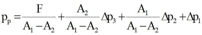 若设液压泵的出口至差动后合成管路前的压力损失为△p1,液压缸出口至合成管路前的压力损失为△p3,合成管路的压力损失为△p2,