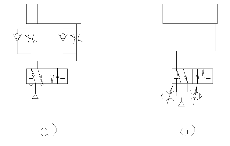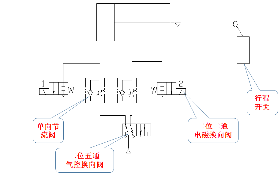 设计题2 双作用气缸的慢速伸出,慢速返回