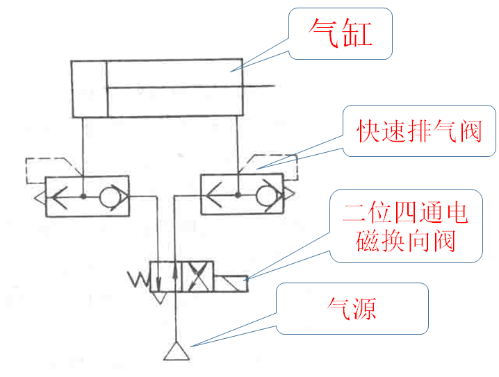 气缸排气通过快速排气阀排气,使得气缸得以快速往复。