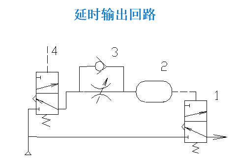 控制信号切换阀4后,气源经单向节流阀3向气容2充气。充气压力经延时升高至阀1换位,阀1就有输出。