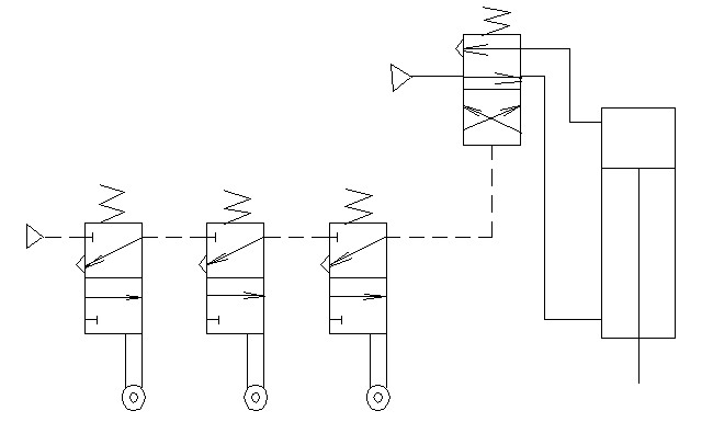 三个机动换向阀同时接通,二位四通换向阀才换向。