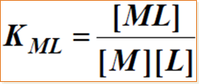 üKML↑,配合物稳定性越高↑,配合反应越完全↑