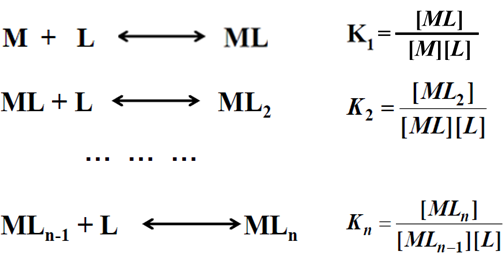 K1,K2...Kn,逐级形成常数,又称为逐级稳定常数。