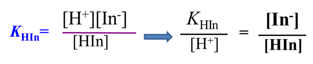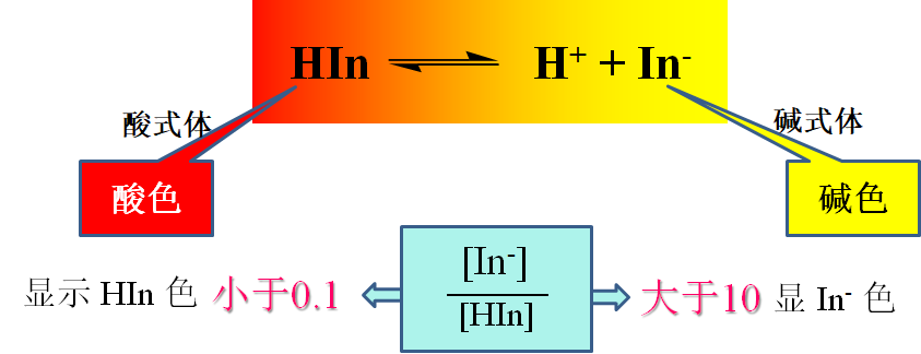 因此:指示剂颜色——酸式体和碱式体的相对浓度→决定于[H+]