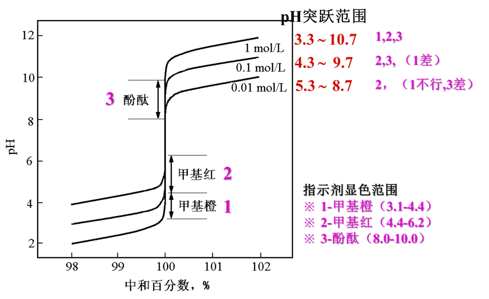 ü 滴定突跃范围决定于酸标液浓度及被测碱液浓度