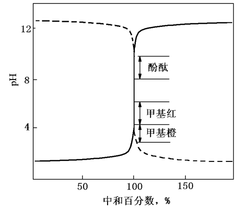 滴定突跃——滴定中化学计量点前后滴定体积0.1%的变化引起pH值等突变的现象。
