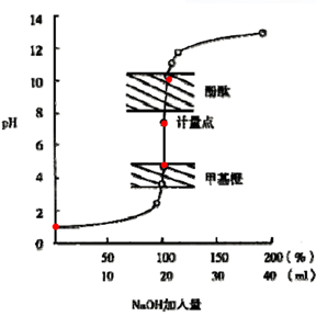 示例:HCl(0.1000mol/L)→NaOH(0.1000mol/L, 20.00mL)