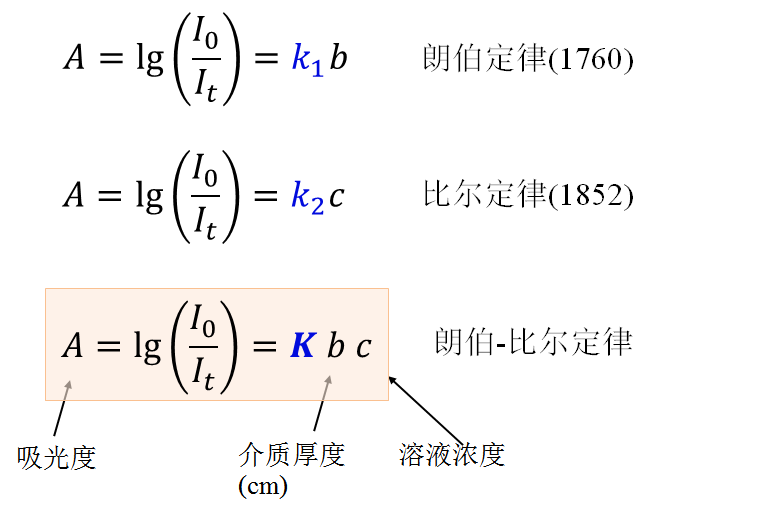 溶液对光的吸收程度,与溶液浓度、液层厚度、入射光波长等因素有关。