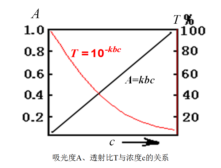 T越大,表示溶液对光的吸收越小;反之,则越大。