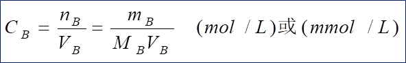 1、物质量的浓度(c):单位体积溶液所含物质的量