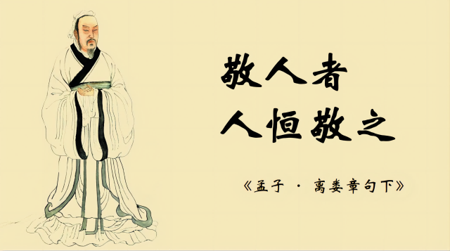 “爱人者,人恒爱之;敬人者,人恒敬之”是出自《孟子·离娄章句下》的一句话,指爱别人的人,别人也永远爱他;尊敬别人的人,别人也永远尊敬他。