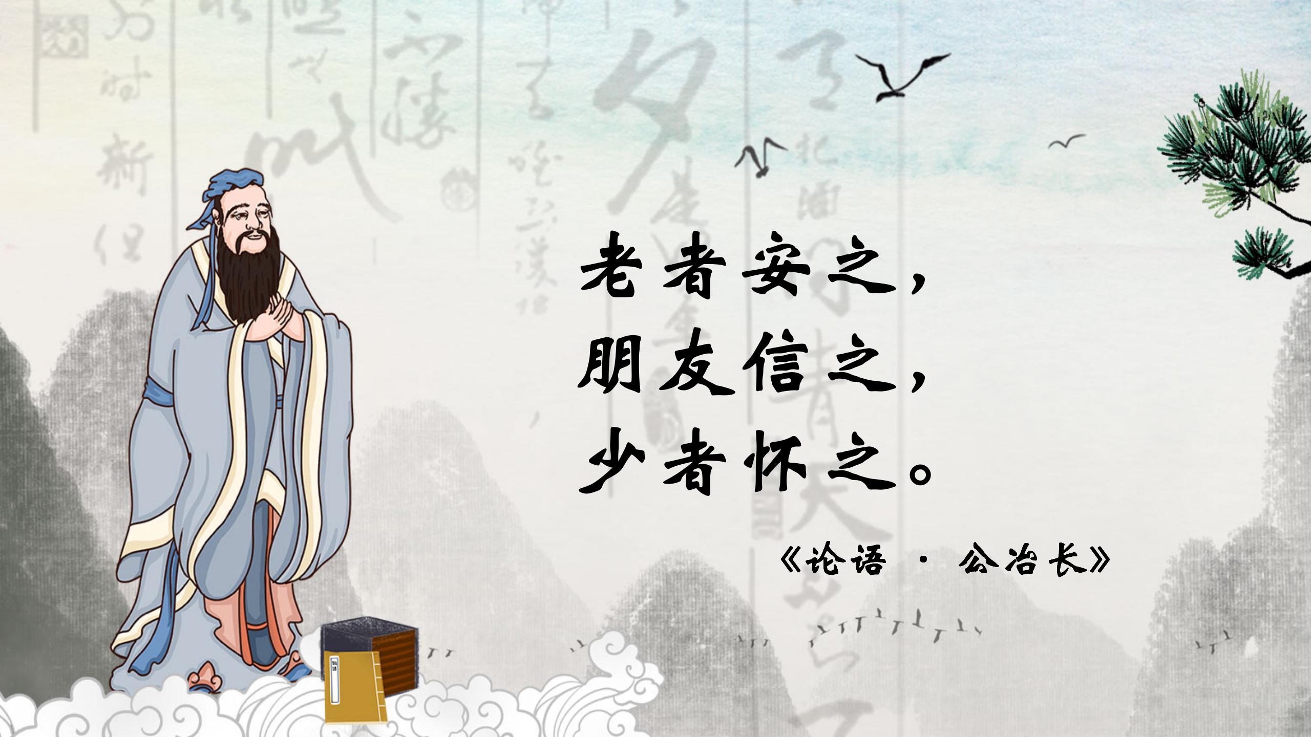 “老者安之,朋友信之,少者怀之。”意思是:老人生活安定,朋友信任我,少年人归依我。