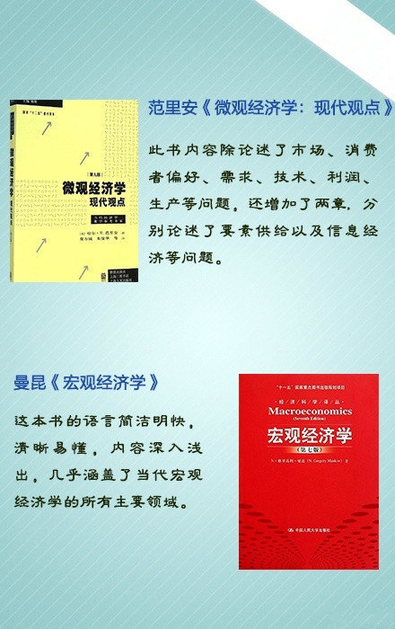 想进一步了解经济学的小伙伴们请速速看过来:这里既有通俗易懂、适合入门学习的——曼昆的《经济学原理》,巴罗的《宏观经济学》,也有经济学界的经典之作——亚当·斯密的《国富论》……