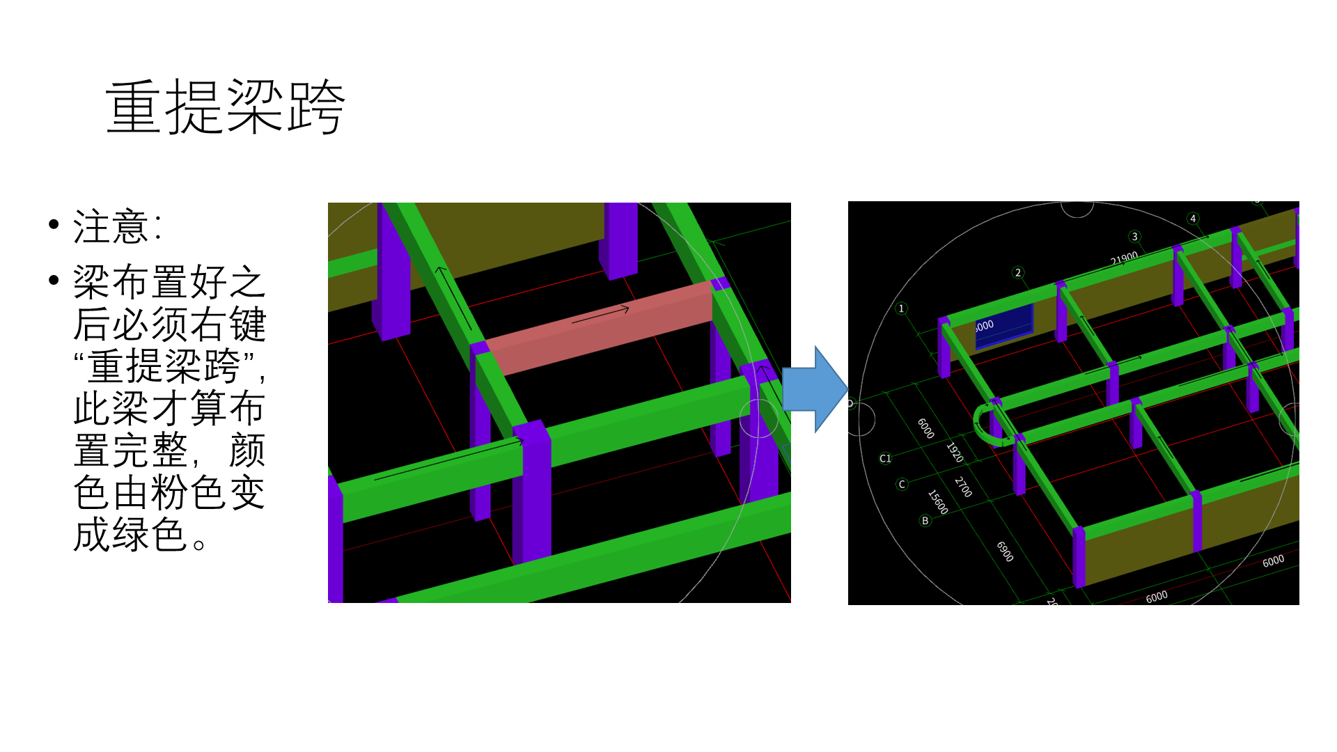 绘制构件后,不能忘记要设置好梁跨,否则构件颜色有异。