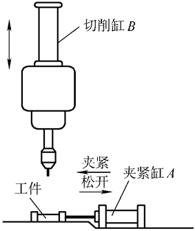 半自动钻床有两个气缸,一个用来驱动钻床主轴的轴向移动也就是切削进给,称之为切削缸;另一个用来夹紧工件,称为夹紧缸。在机床的切削过程中,要求两个气缸按一定的顺序要求先后动作,完成一个工作循环,即工作要求为:夹紧缸伸出夹紧工件→切削缸切削进给→切削缸退回→夹紧缸松开工件退回。