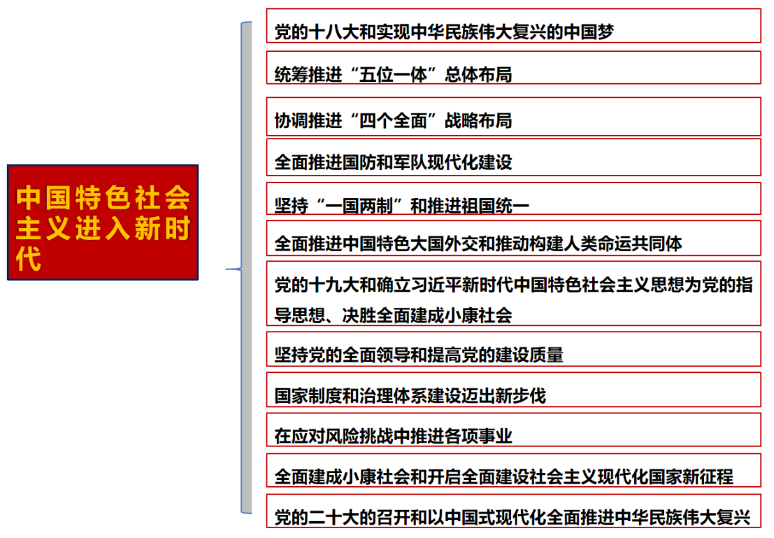 通过以党的十八大、十九大、十九届六中全会《决议》、二十大为节点和线索,帮助同学了解党的十八大以来,党和国家事业取得的历史性成就、发生的历史性变革,感悟在世界百年未有之大变局中,我们党统筹国内国际两个大局,统筹推进“五位一体”总体布局,协调推进“四个全面”战略布局,为新时代中国特色社会主义事业布新局、开新篇。