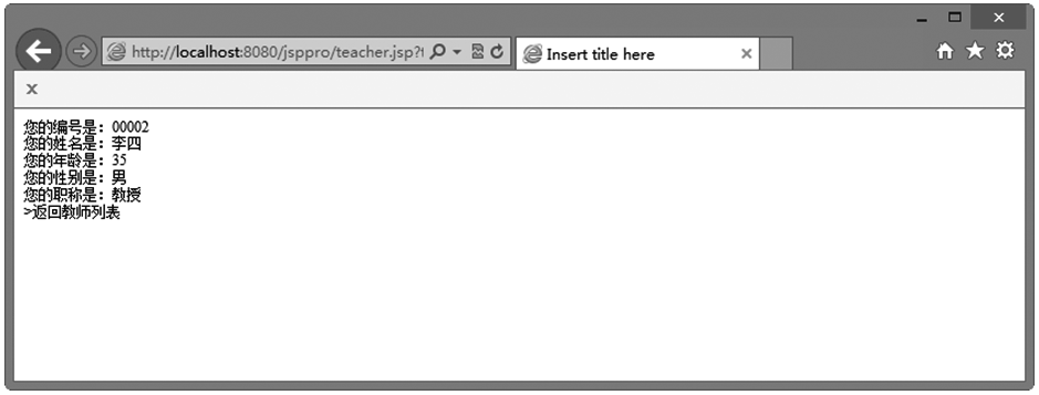 您的姓名是:<%=teacher.getTeachername() %><br>