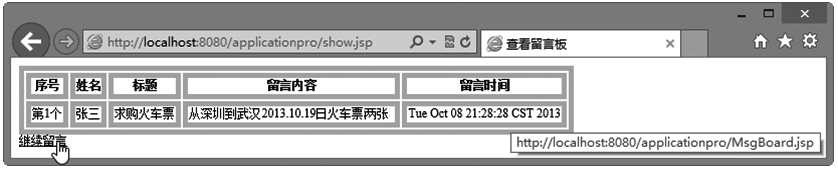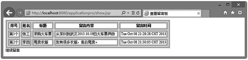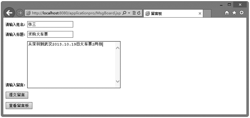 2.提交留言时,留言信息应能保存在application服务器对象中。