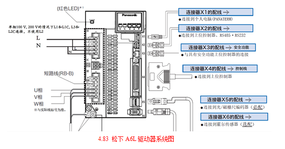 熟悉直线电动机的接线方法;以松下A6L直线驱动及直线电动机系统为例了解直线电动机与驱动器的接线方法。松下A6L伺服驱动器如图4.82(a)所示。