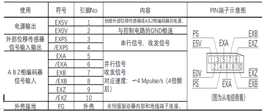 X5: | 编码器连接器,与电动机反馈尺连接,如需布入拖链需注意,请勿将连接处放入弯折部分 |