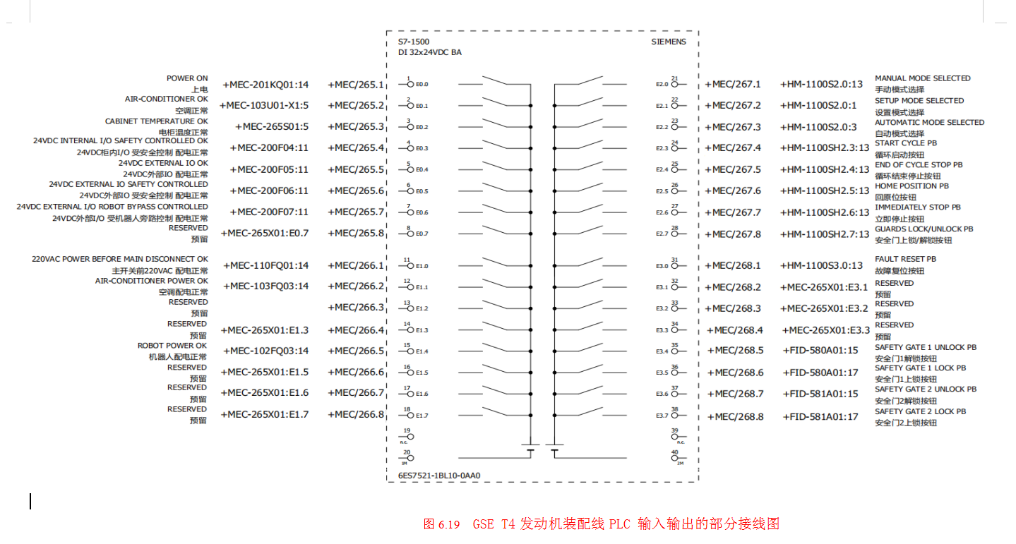 气门锁夹压装机动作及时序表如表6.5所示。GSE T4发动机装配线PLC 输入输出的一部分接线图如图6.19所示。