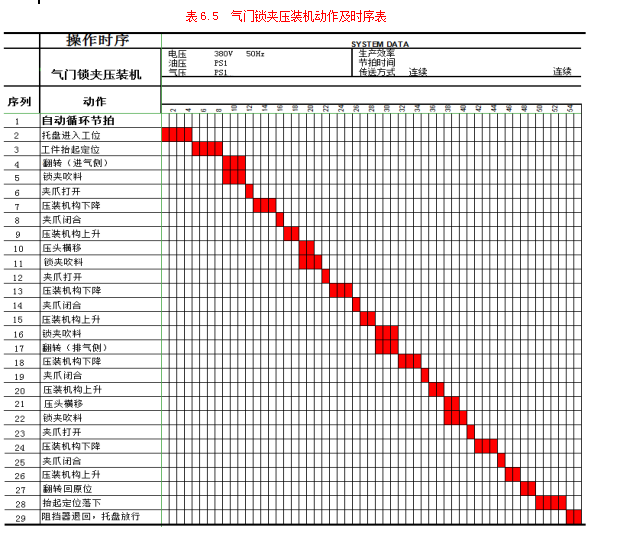 表6.4 压装气门锁夹动作流程表