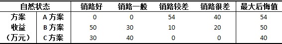 根据上表,按最小最大后悔值准则,C方案为最终决策方案。