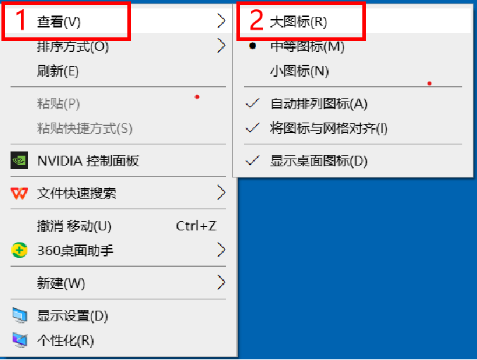 (1)设置图标显示大小。当桌面放置的快捷图标较多时,可通过设置使其呈小图标显示,这样可减少对桌面的占用。而当用户的显示器较大时,使用小图标不便于用户查看,可将图标调整为大图标显示。